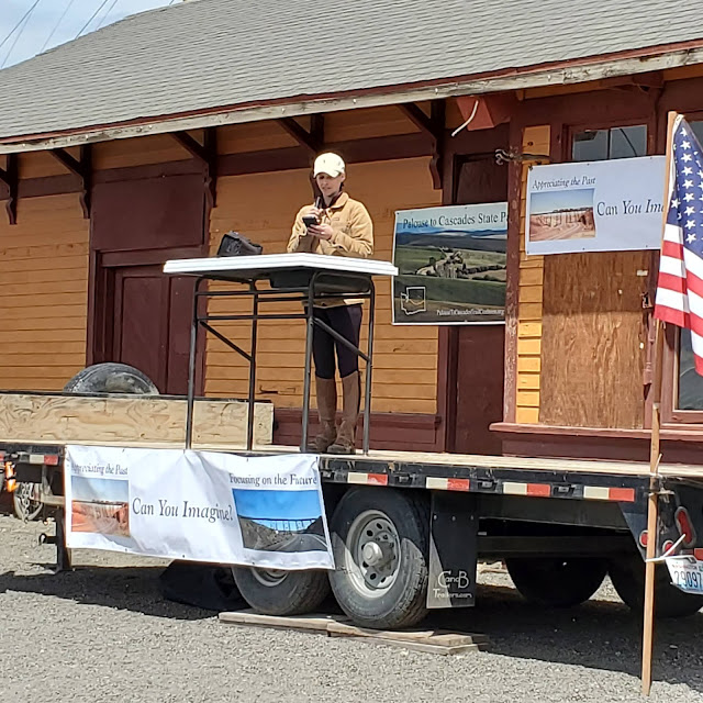 Andrea is a board member for the Palouse to Cascade Trail Coalition, and spoke at the brief ceremony that celebrated the grand opening of the trestle, which completes a connection between two parts of the PtCT (not to be confused with the PCT, the Pacific Crest Trail, which runs north/south instead of east/west).